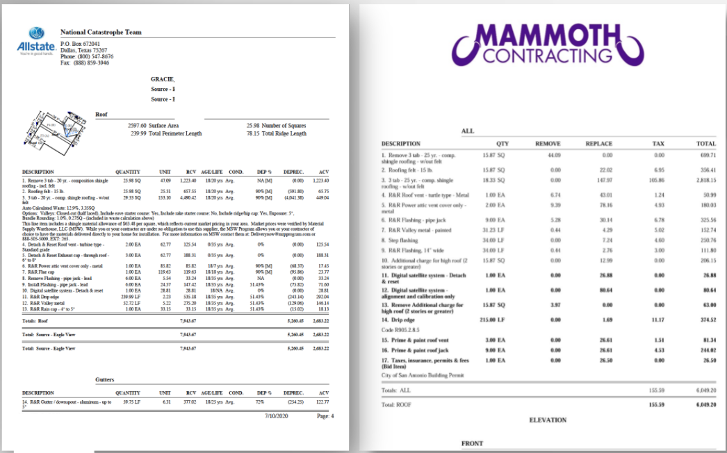 • Detailed, line Item estimate using the same estimating tools as the insurance companies use.